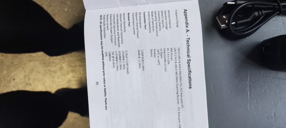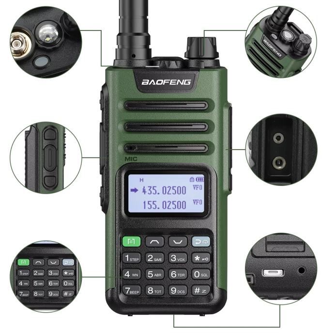 CTCSS/DCS; Dvopojasni zaslon; Dvostruko stanje pripravnosti; Ugrađena LED svjetiljka; VOX funkcija; monitor; upozorenje o niskoj bateriji; Funkcija skeniranja; LCD zaslon; Izbor širokog / uskog pojasa; FM funkcija; Automatsko zaključavanje tipkovnice; USB Type-C punjenje; PC i ručno programabilno.