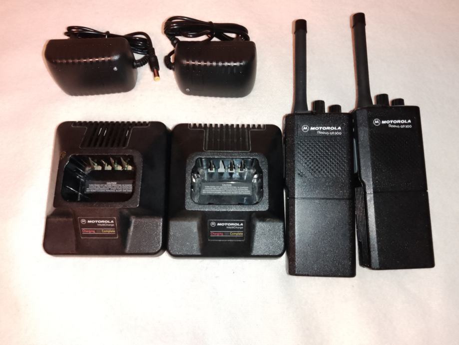 Dvije radio stanice Motorola GP300 sa novim antenama, novim baterijama i punjačima, 16 kanala. Uparene na iste frekvencije UHF (430-470Mhz) moguče uparivanje sa PMR 446 stanicama, dostupne su i u verziji VHF (136-174Mhz). Pogodno za lovce, airsoft, planinare.....mogučnost programiranja frekvencija po želji kupca.