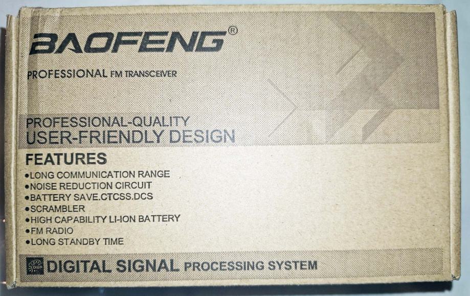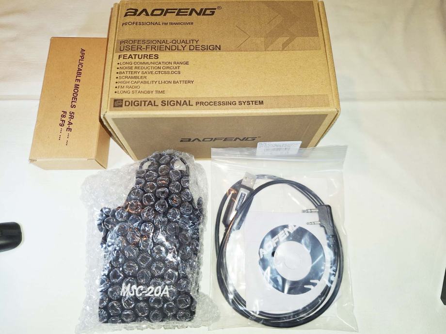 Uz to još ide i kabel Baofeng, sa pripadajućim programom za programiranje stanice preko kompjutera ili laptopa. Mogu se upisivati, brisati kanali sa svim potrebnim parametrima i mijenjati postavke samog uređaja.
