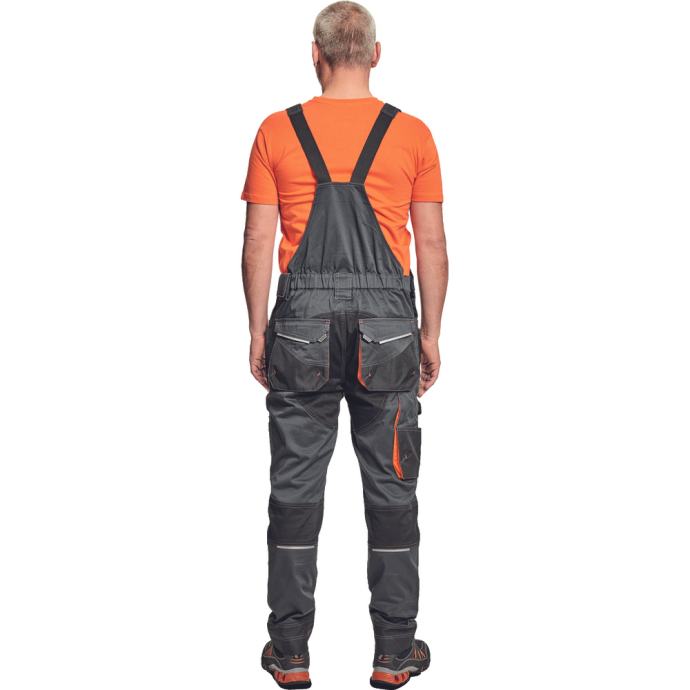Ergonomic fit, izdržljivi trostruki šavovi na nogavicama i preponama, 600D oxford ojačanja na koljenima s mogućnošću umetanja štitnika za koljena. Prostrani multifunkcionalni prednji džepovi s trakama za alat, 2 stražnja džepa, džep na nogavici, reflektirajući detalji, podesiva duljina.