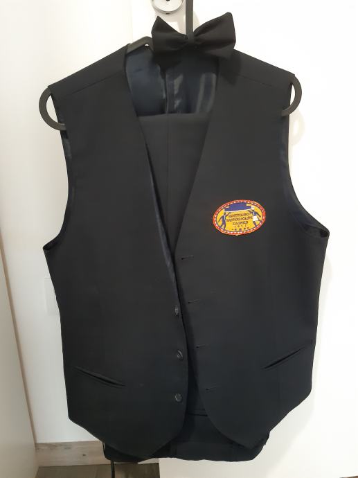 Hlače i prsluk za ugostiteljsku školu.Duzina hlača 96,širina 82,prsluk širina 100.