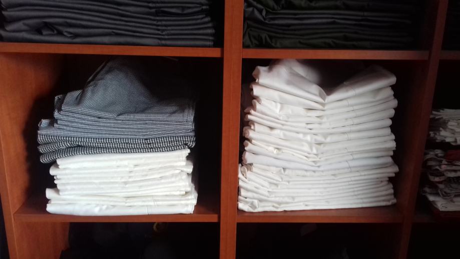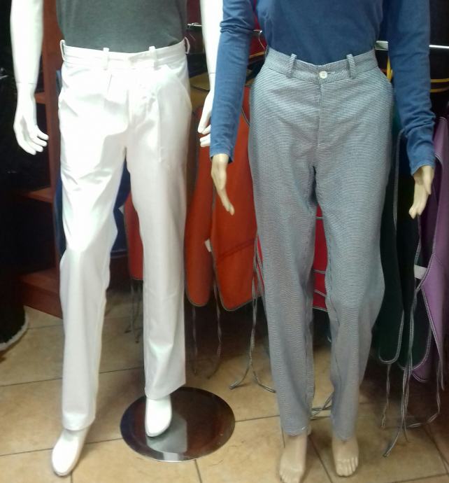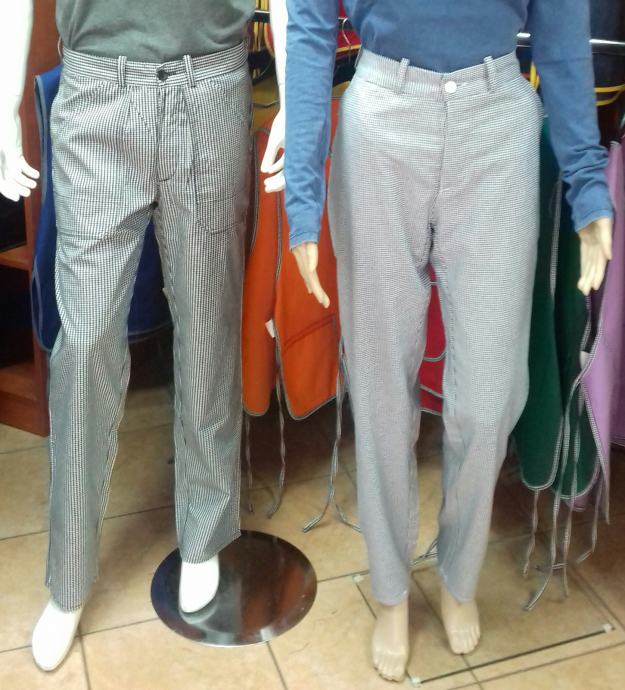 Radne hlače za kuhare, pekare ,slastičare, pepito ili bijele pamučne. Hlače mogu biti sa zatvaračem, dugmićima ili s gumom, džepovi s džepovinom ili našiveni od istog materijala.Materijali su 100 % pamuk i najčešće se muške pepito izrađuju od crno - bijelog pepito,a ženske od plavo - bijelog pepito materijala. Cijena bijelih hlača je 20 eura, a pepito 22 eura.