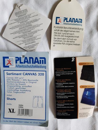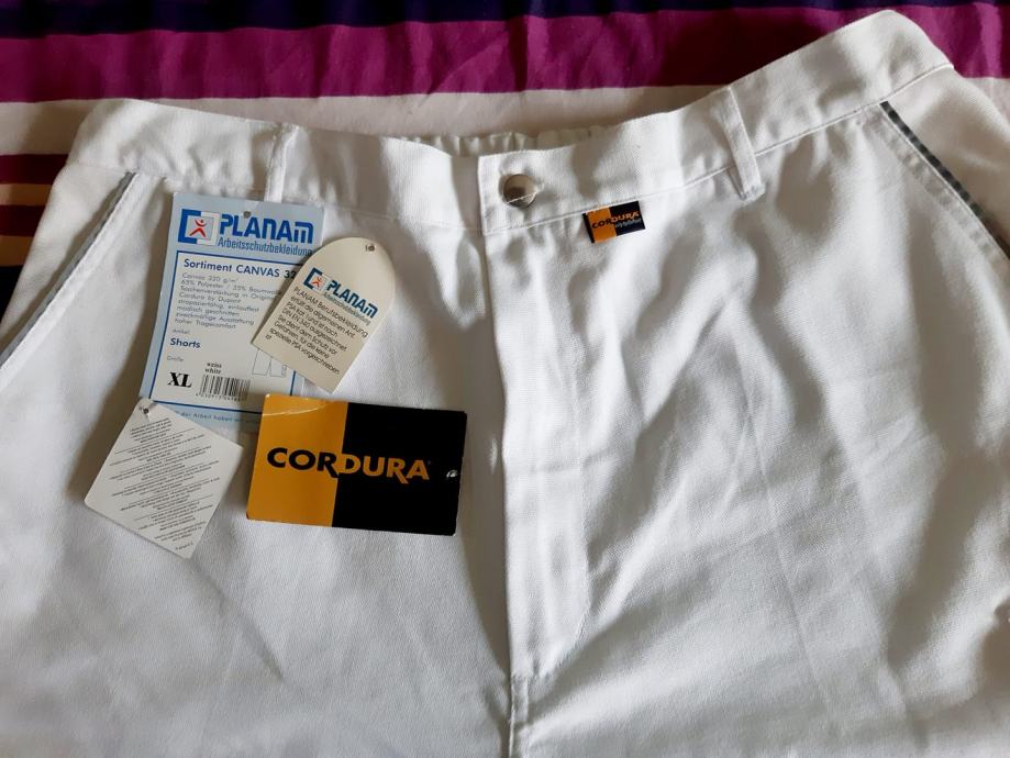 Planam, Cordura only by DuPont kvalitetne zaštitne radne hlače sa džepovima, bijele boje sa reflektirajućim trakama na obrubima džepova, gumirane u struku, veličina: XL, materijal: 65% poliester, 35% pamuk, sa cordura vrlo kvalitetnim i otpornim nylonom koji je vodonepropusan i odbija uljne mrlje, čvrst, otporan na abrazije i poderotine, nove sa etiketama