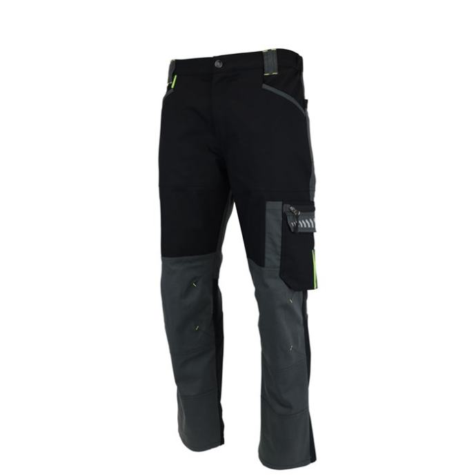 Rastezljive radne hlače BERGEN FLEX sportskog izgleda. Kopča se skrivenim patent zatvaračem, ima više funkcionalnih džepova i dodatno pojačanje od tkanine na koljenima s džepom za štitinke za koljena, reflektirajući elementi radi bolje uočljivosti. Kroj je klasičan i dobro pristaje svima.