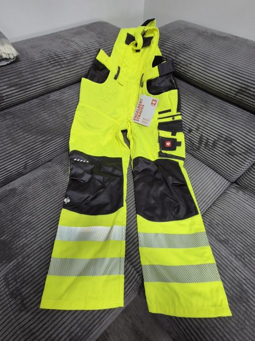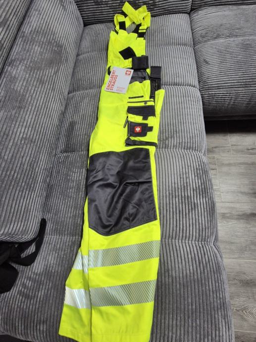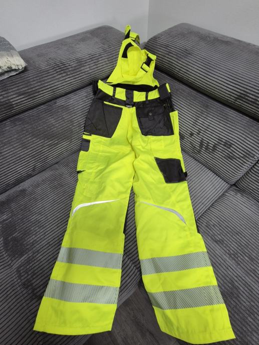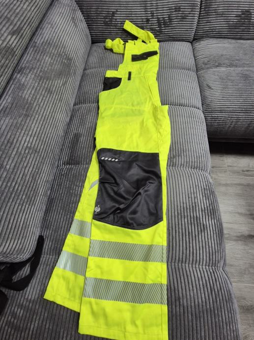 Muške radne hlače sa tregerima podesivim po duljini s elastičnim umetkom, rastezljiva zona kretanja na leđima, visokokvalitetnim reflektirajućim trakicama, puno džepova za pospremanje alata itd.
