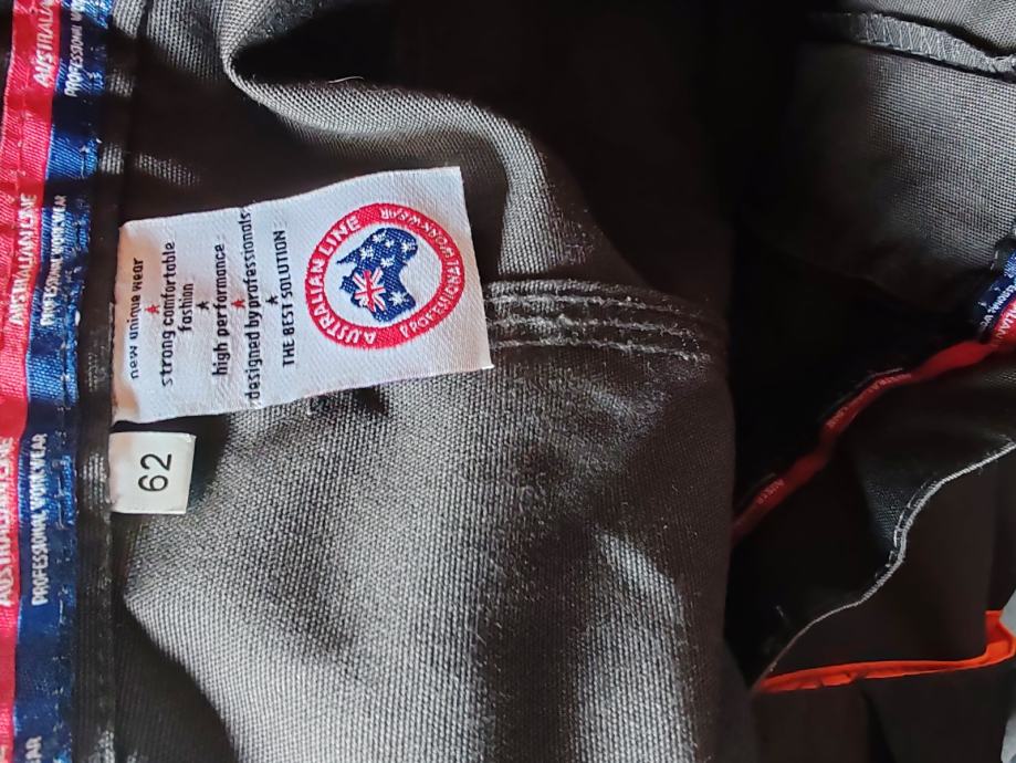 Prodajem muške radne hlače u sivoj boji, veličina W48 (62). Hlače su opremljene s višestrukim džepovima. Imaju pojačanja na koljenima i drugim izloženim dijelovima za dodatnu izdržljivost. Detalji u narančastoj boji naglašavaju rubove džepova i šavove. Proizvod je nov, bez etikete.