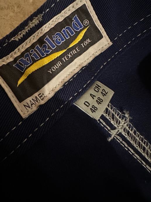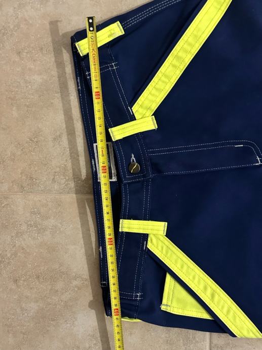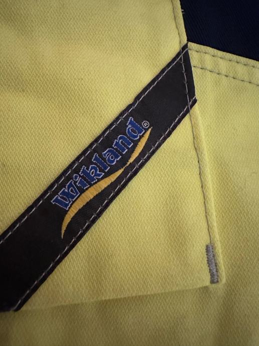 Prodajem Wikland radne hlače u kombinaciji tamnoplave i žuto-zelene boje s reflektirajućim trakama.