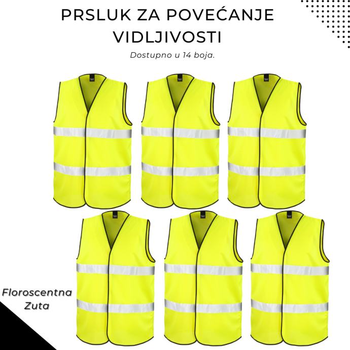 • Fluorescentno narančasta, Fluorescentno žuta: EN ISO 20471:2013, razred 2