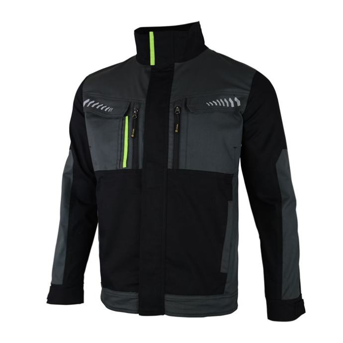 Rastezljiva radna jakna BERGEN FLEX kroja koji savršeno pristaje. Ima visoki ovratnik, 6 funkcionalnih džepova. Zatvara se patent zatvaračem, rukavi anatomski oblikovani, reflektirajući print. Kroj je klasičan i dobro pristaje svima.