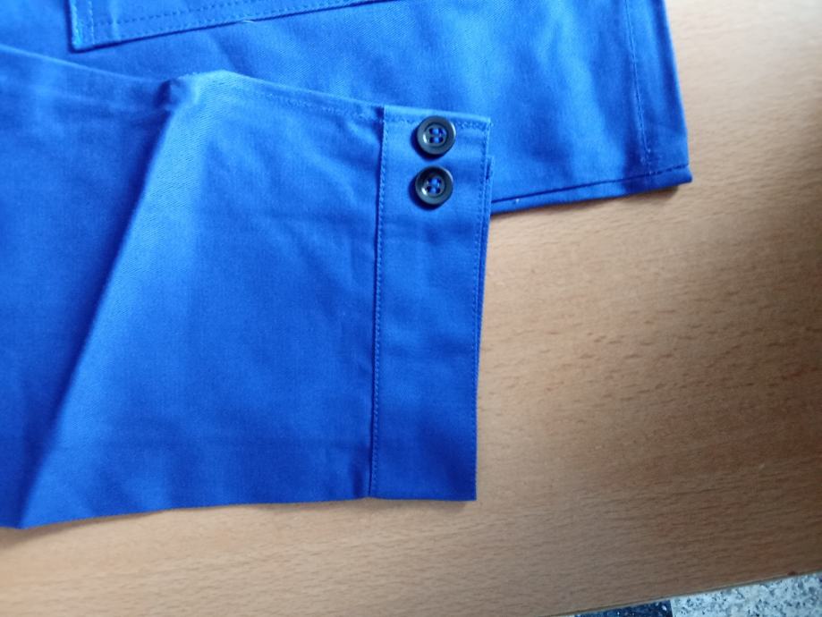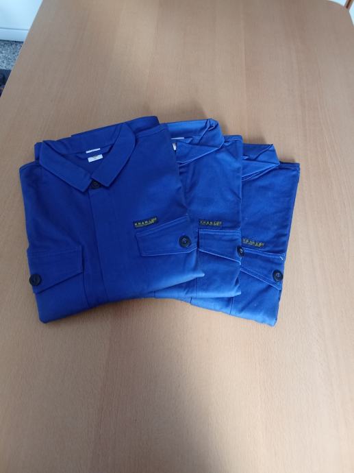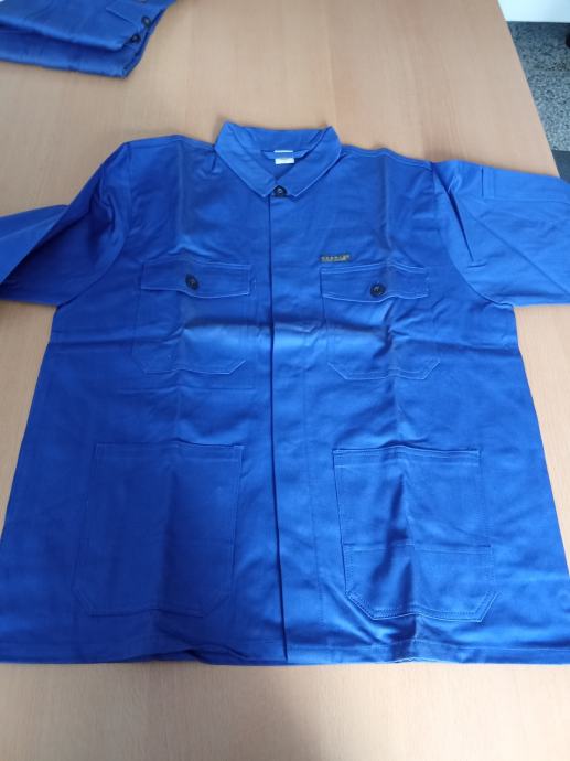 Prodajem radnu jaknu plave boje u veličini XL. Jakna je od pamuka, s dugim rukavima i klasičnim ovratnikom. Ima više funkcionalnih džepova na prsima i strankama, svi sa zatvaranjem na gumb. Gumbovi su također plavih tonova. Nova je, bez etikete. Vrlo stabilna i otporna na habanje, idealna za bravare.
