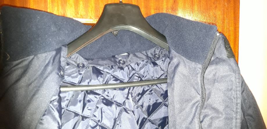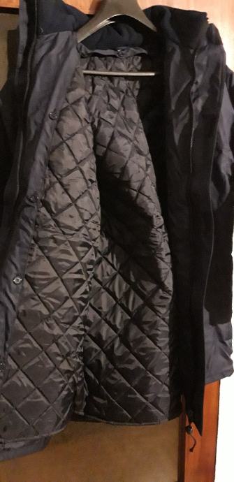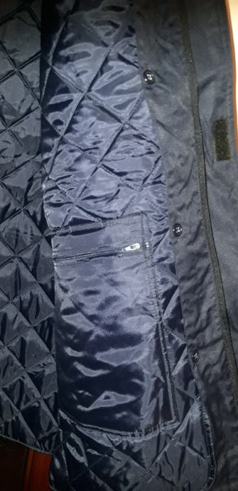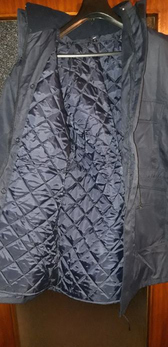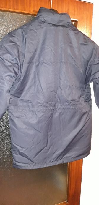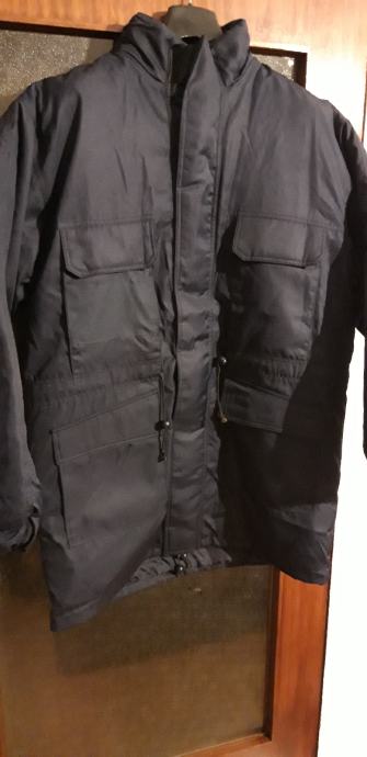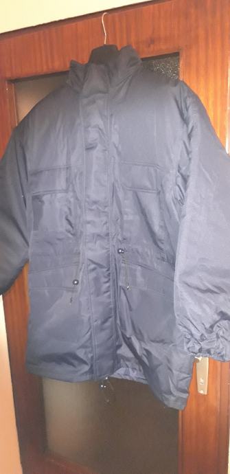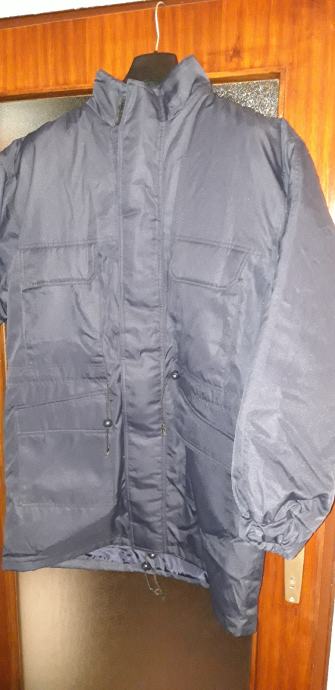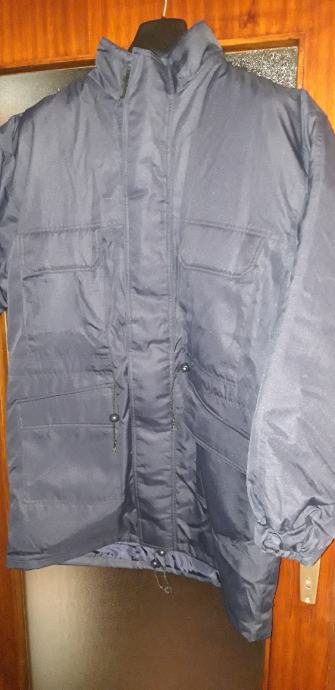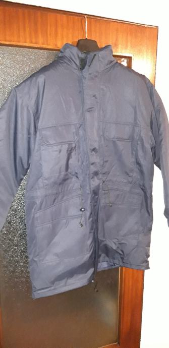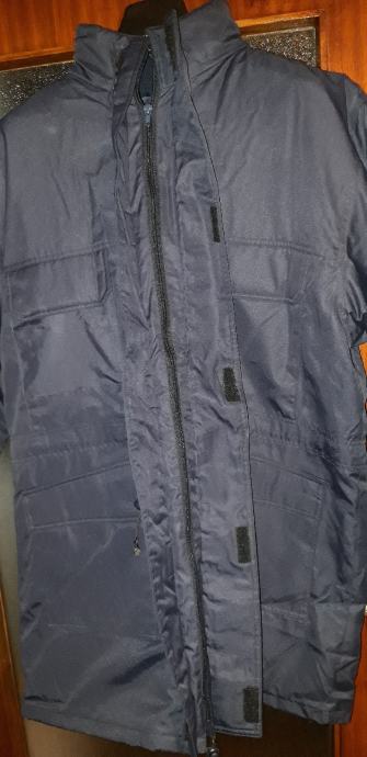 Nova kvalitetna zaštitna jakna, plave boje, kopčanje na cif i čičak, proštepano utopljenje odvojivo od jakne, kapuljača u sklopu kragne, veličina 54, dužina 90 cm, ramena 60 cm, topla, otporna na vjetar i kišu.
