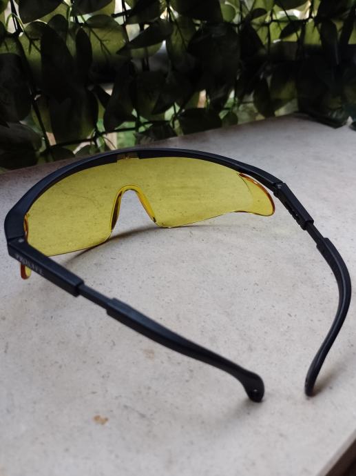 Uvex Prosafe, žute leće, crni okvir, zaštita od UV zračenja, prilagodljive ručice. Zadovoljavaju normu CE EN166.