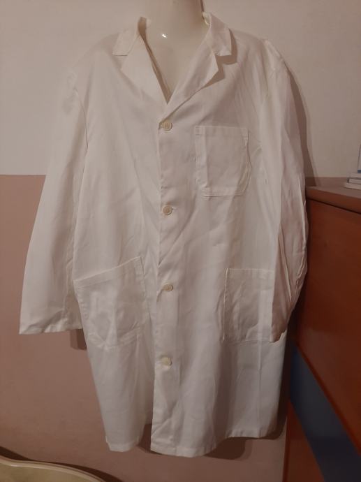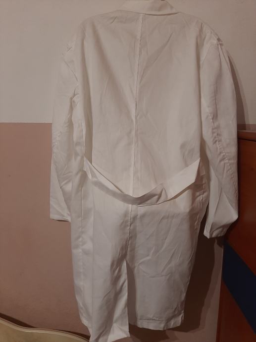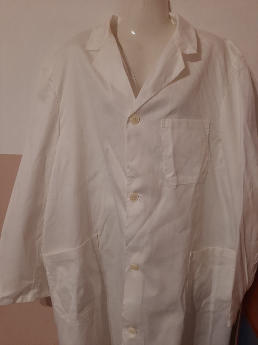 Potpuno nova radna bijela kuta. Vel. XL. Dužina od vrha ramena do dalje 103cm, širina od pazuha do pazuha 63cm, dužina rukava od pazuha prema dolje 45cm
