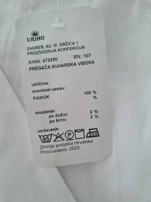 Potpuno novo, zapakirano. Set muške radne kuharske odjeće veličina 54.