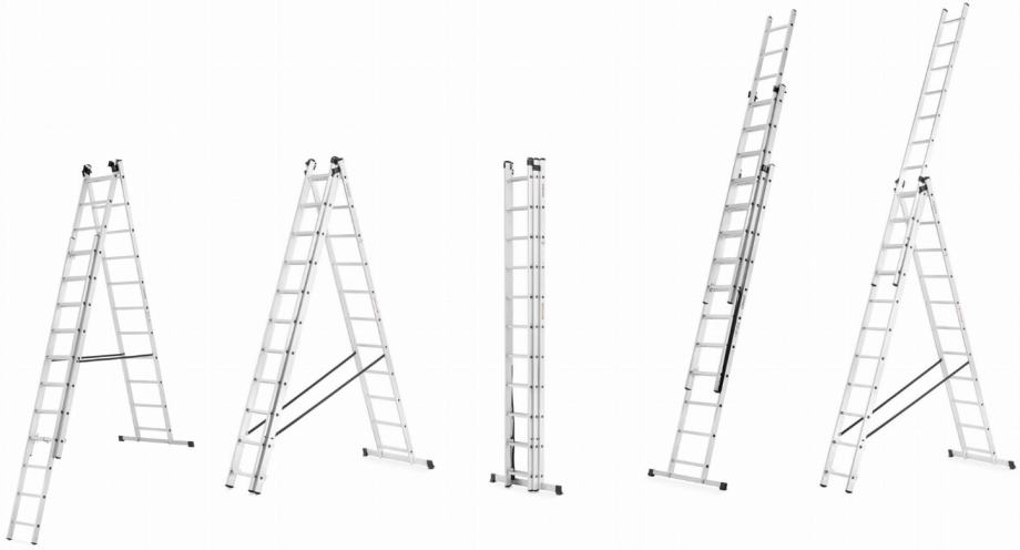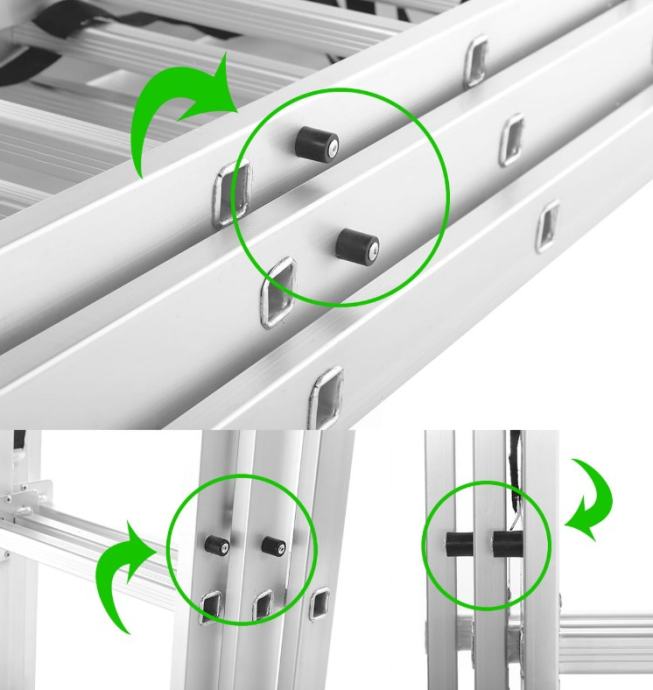 Zahvaljujući sustavu produženja i sklapanja od prečke do prečke, ljestve se mogu produžiti kao naslonjene ljestve. Duljina produženih ljestava može se povećati svakih 28 cm, tj. svake prečke. Na taj se način duljina ljestava može prilagoditi potrebnoj duljini.