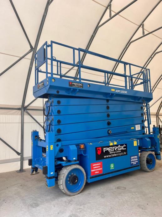 Električna škarasta platforma Dingli JCPT2212DC ima maksimalan kapacitet od 750 kg i radnu visinu od 21,70 m. Zbog dodatnog proširenja radne platforme, sada je moguć veći prostor za kretanje, što operaterima čini radnju lakšom i sigurnijom na gradilištu. Mobilnost platforme poboljšana je pogonskim motorima na izmjeničnu struju sa čeličnim poklopcima kako bi se osigurao nulti radijus okretanja, nudeći poboljšane performanse tijekom manevriranja u uskim prostorima. Ova energetski učinkovita škarasta dizalica bez emisija i tihi rad čini ga savršenim za sva radna okruženja iznutra i izvana. Dodatne značajke su automatska zaštita od rupa i jedinstveni dizajn stroja bliže tlu, što povećava ukupnu stabilnost platforme. Dijagnostički, JCPT2212DC je opremljen automatskim prikazom koda pogreške za lakše provjere održavanja i bržu servisnu dijagnostiku.