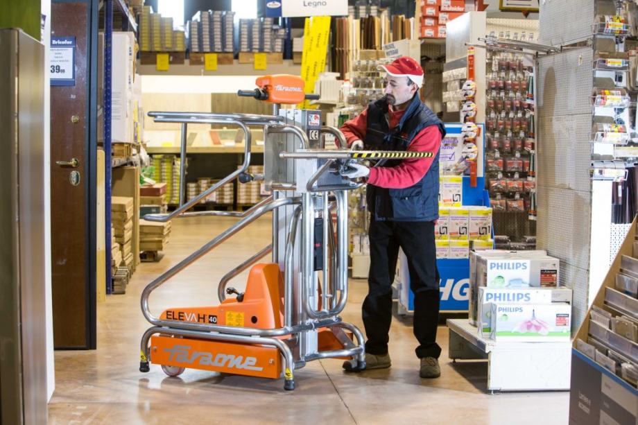Samohodna električna podizna platforma za unutarnje radove (čišćenje, prebrojavanje artikala, slaganje, mali popravci...)