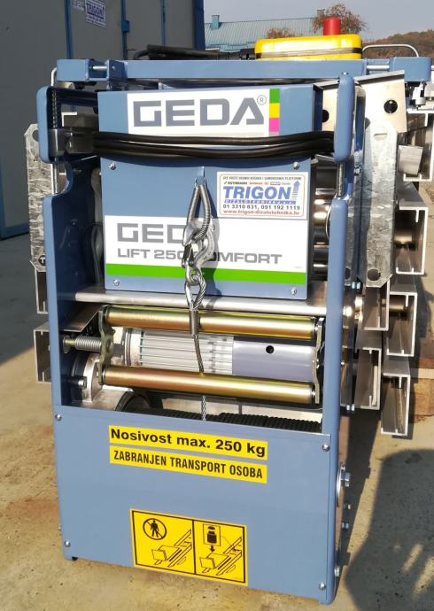 TRIGON DIZALOTEHNIKA d.o.o. već nepunih 30 godina profesionalno zastupa poznatu Njemačku tvrtku GEDA u Hrvatskoj. Imamo stalno više komada GEDA LIFTOVA Comfort sa najboljim i najefektivnijim priborom na lageru za trenutnu isporuku.