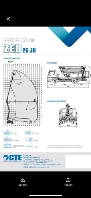 Auto-košara je pogodna za izvođenje elektroinstalaterskih, građevinskih, montažnih, komunalnih i ostalih radova na visini.Nove gume i akumulator i nova struja i instalacija i novi svi ventili košare