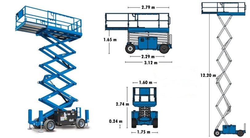 Samohodna dizel ili elektro podizna platforma GENIE sa stabilizatorima i pogonom 4 x 4