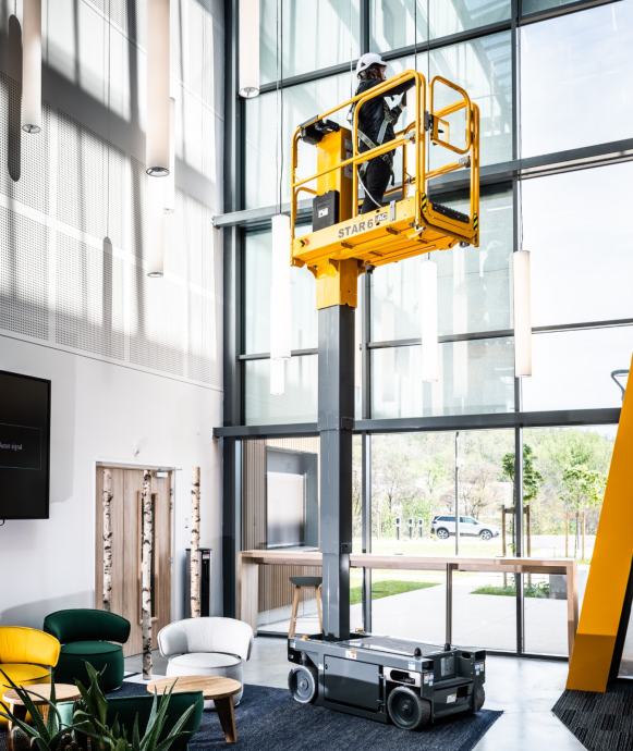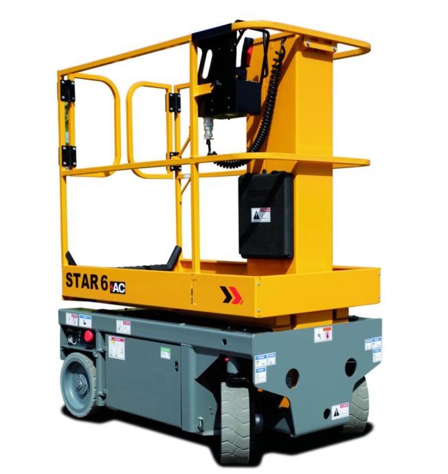 Haulotte Star 6 je kompaktna električna vertikalna platforma, idealna za rad u zatvorenim prostorima. Odlikuje se tihim radom, malim radijusom okretanja i jednostavnim upravljanjem, što je čini savršenom za skladišta, hale i trgovačke centre. Zahvaljujući stabilnoj konstrukciji i pouzdanim sigurnosnim sustavima, omogućuje siguran i učinkovit rad na visini.