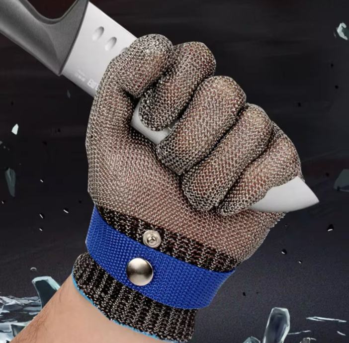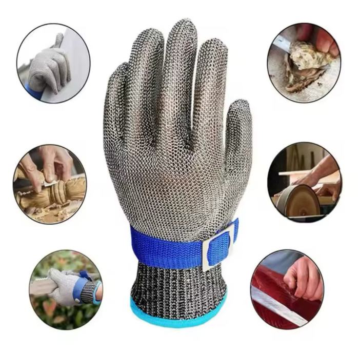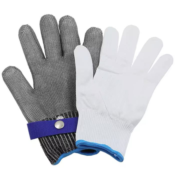 Rukavica od nehrđajučeg čelika za mesare. Uz rukavicu dolazi i najlonska rukavica koja prianja uz ruku radi lakšeg i ugodnijeg rada.
