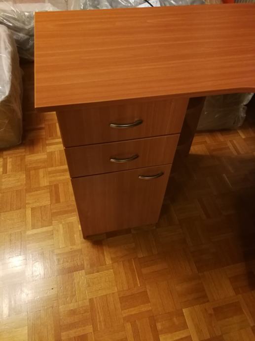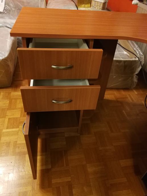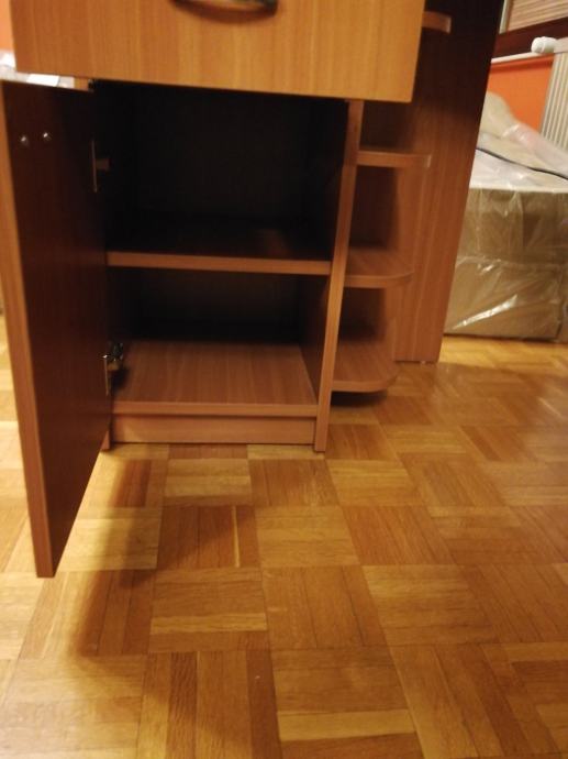 Stol ima ormarić s dvije ladice i pretinac (s vratima) s dvije police. S unutrašnje strane nalaze se 4 police (uz ormarić) i dvije police s druge strane. Uz stol ide i stolica s kotačima (narandžaste boje) koja je gratis.