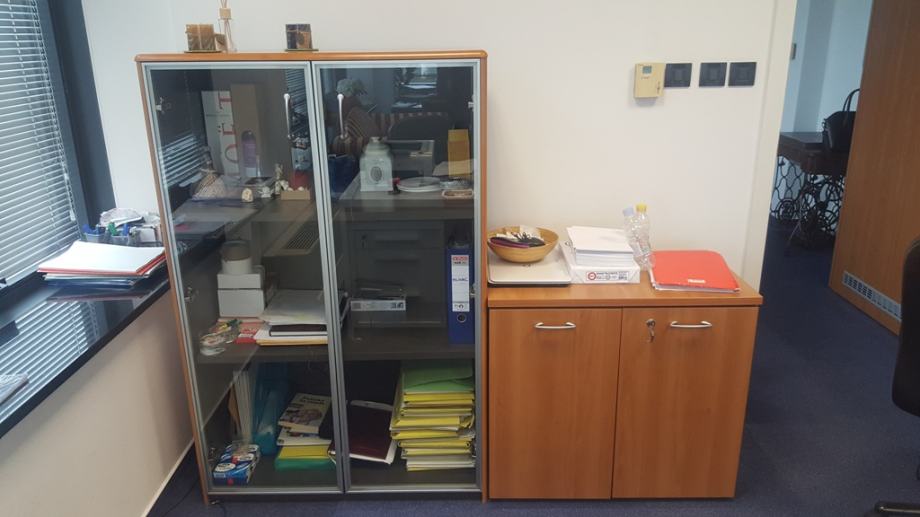 Veliki stol koji može biti samostalan ali i konferencijski, stakleni ormarić, dvije komode