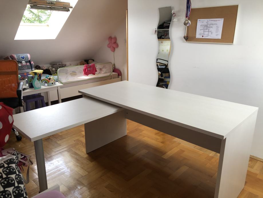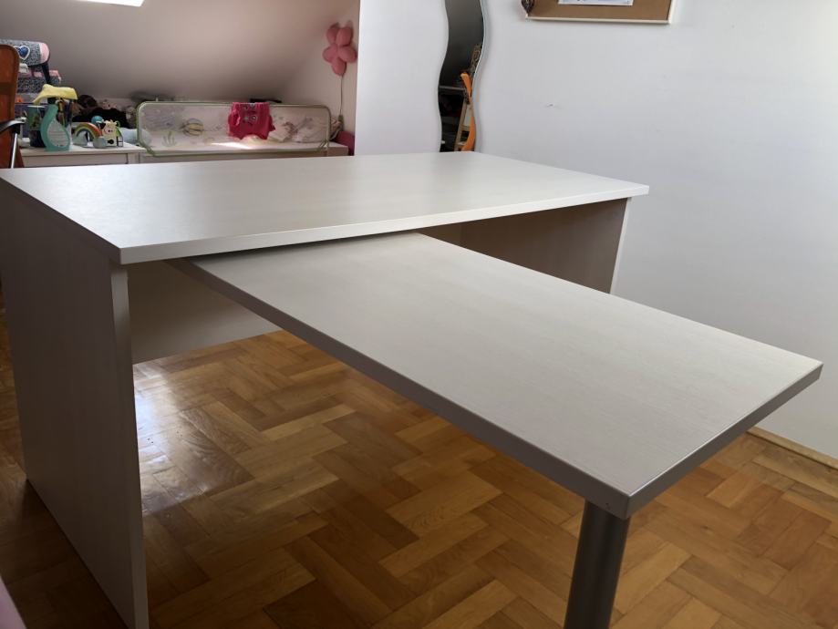 Prodajem masivan i čvrst pisaći stol dimenzije 150 x 70 s dodatnim preklopnim stolićem za računalo, bez oštećenja.