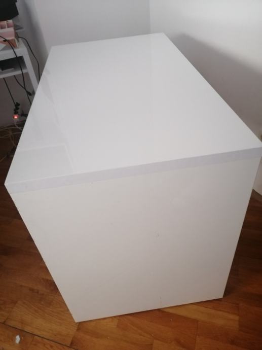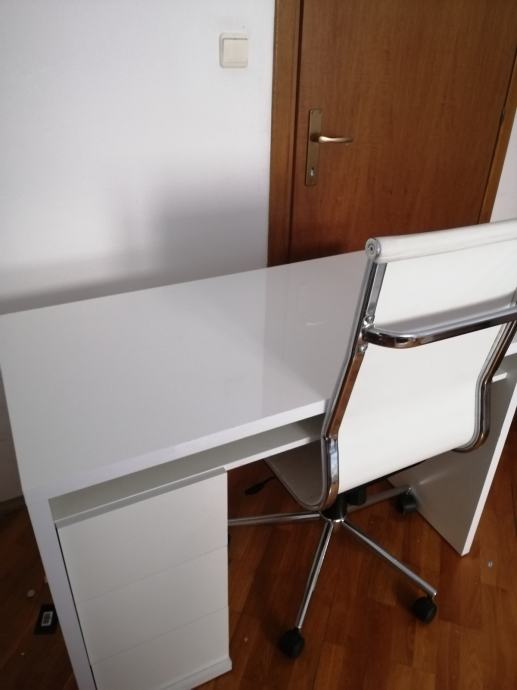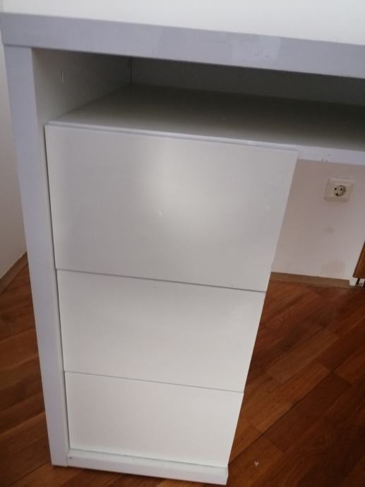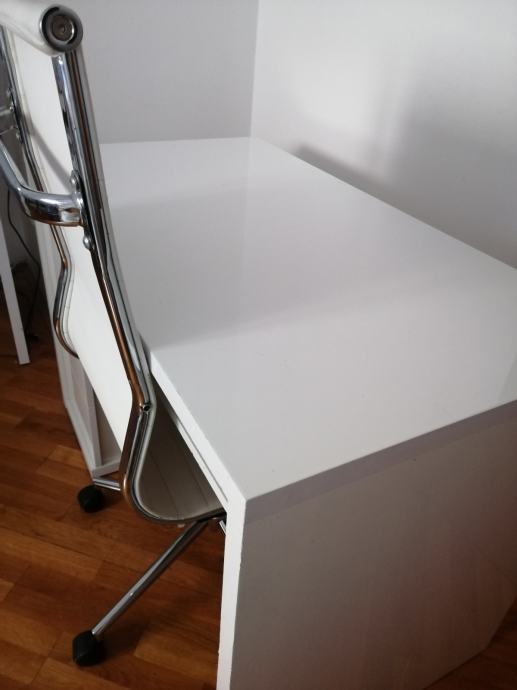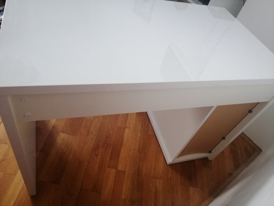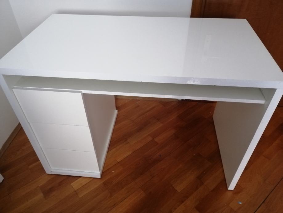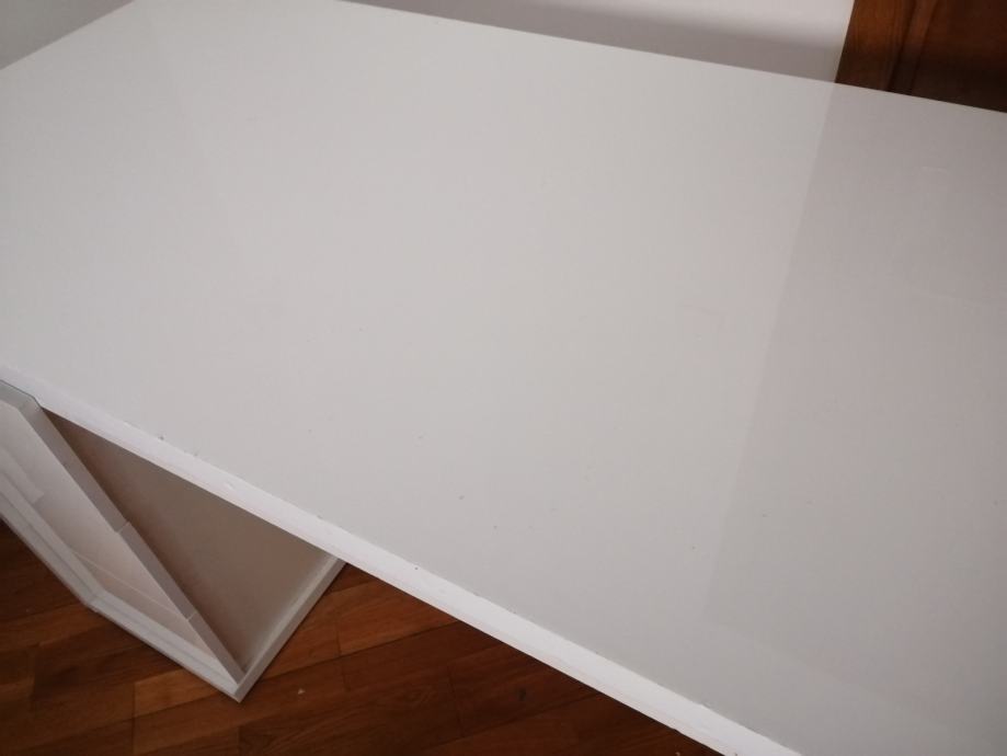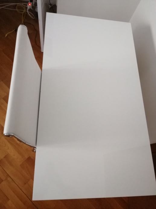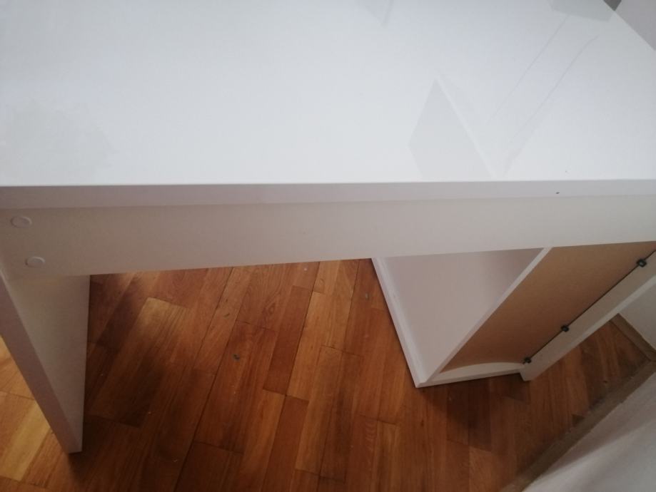 Prodajem RADNI STOL bijeli moderni, visoki sjaj, u izvrsnom stanju, sa 3 ladice ispod stola sa lijeve strane i jednom policom ispod radne ploče. Elegantan, moderan, funkcionalan i kvalitetan. Dimenzija 110 x 60 (visina standardna 75)