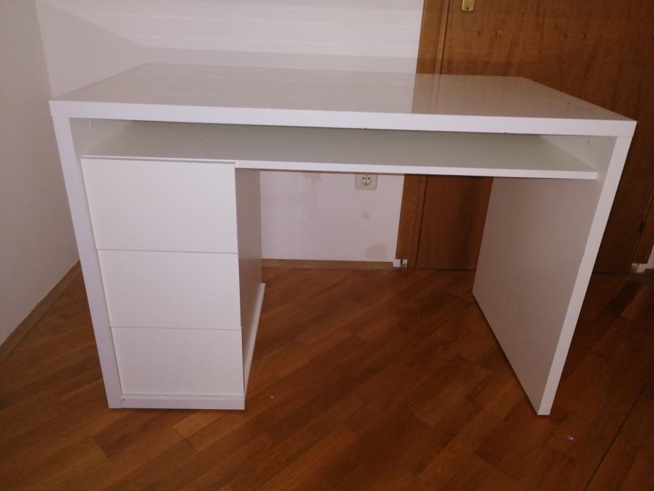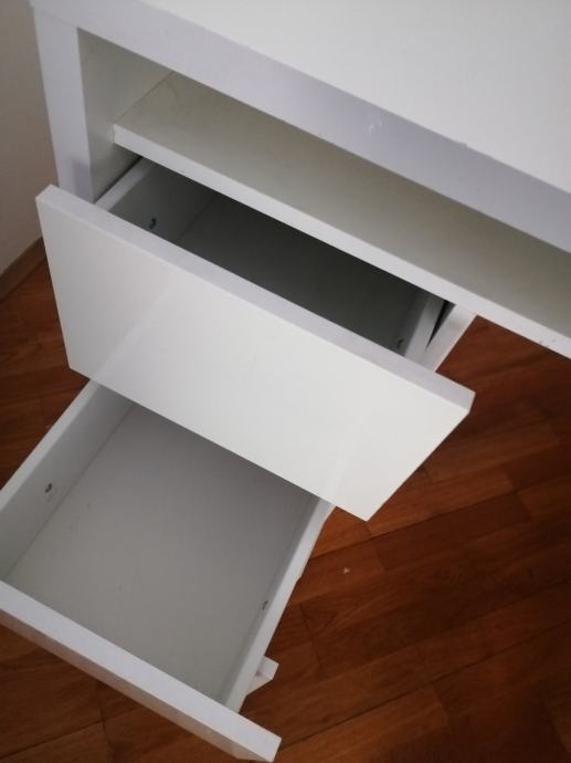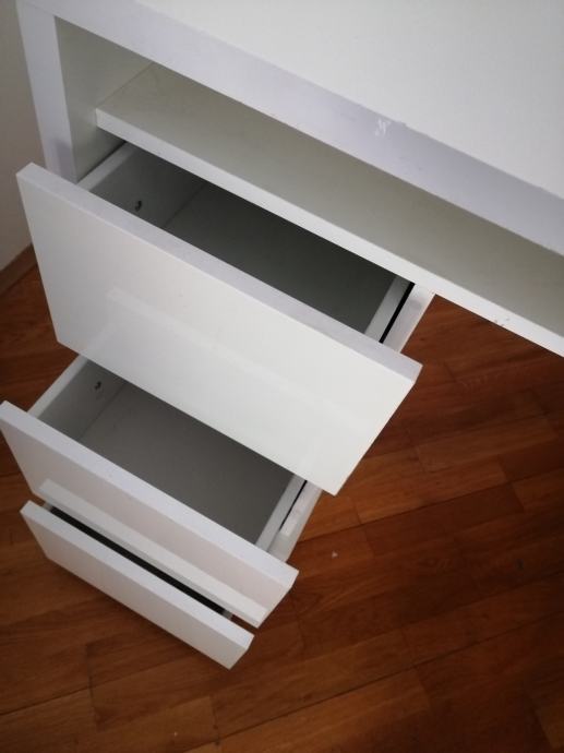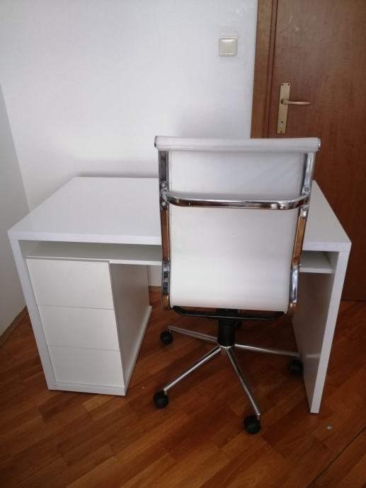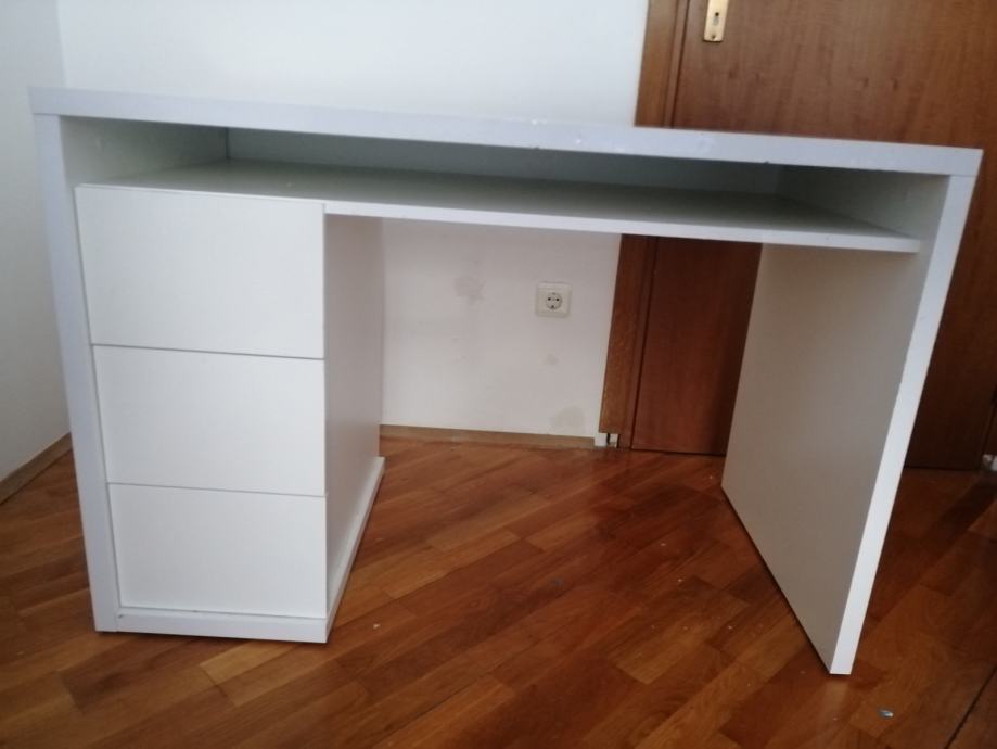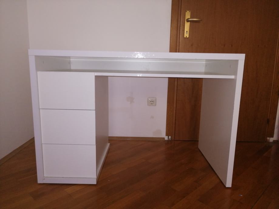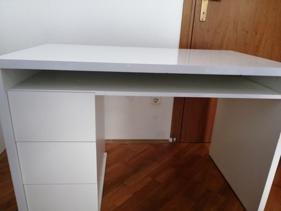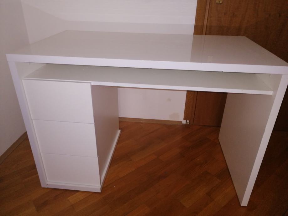 Prodajem RADNI STOL bijeli moderni, visoki sjaj, u izvrsnom stanju, sa 3 ladice ispod stola sa lijeve strane i jednom policom ispod radne ploče. Elegantan, moderan, funkcionalan i kvalitetan. Dimenzija 110 x 60 (visina standardna 75)