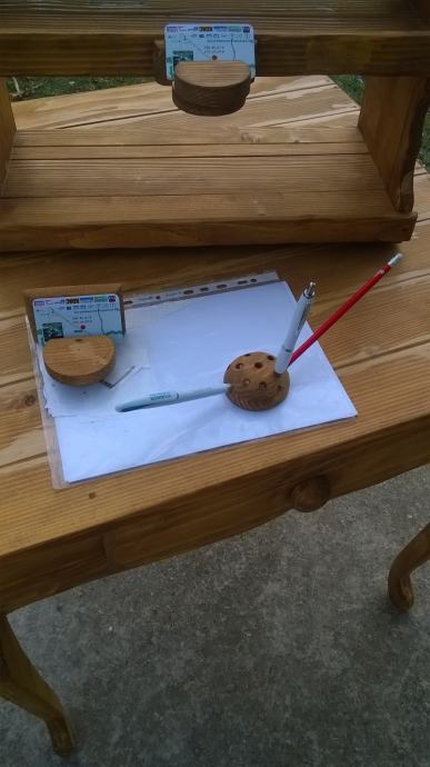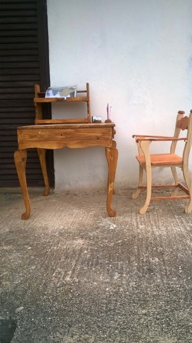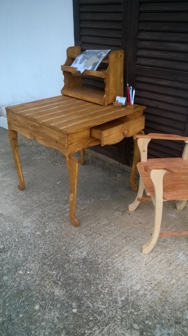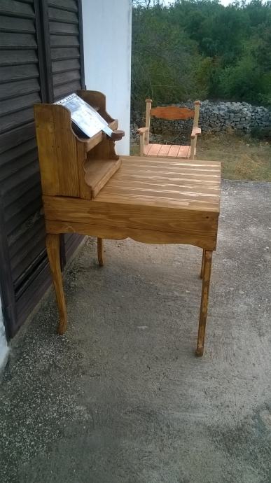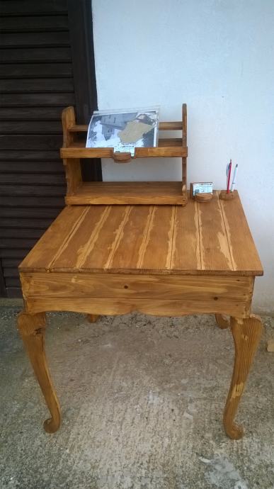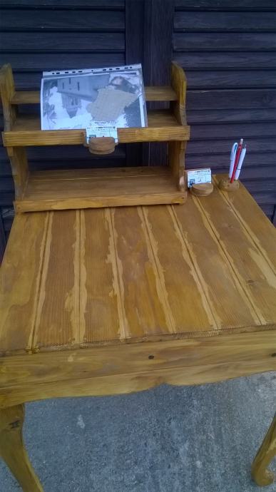 Prodaje se radin stol sa dodacima,od punog drveta uz garanciju sa dodacima,stol je pogodan za kancelarie,tvrtke,agencije i sl.na stolu se nalazi ukrasna stalazica za drzanje prospekata,papira i sl.na sredini stalazice se nalazi mjesto za vizike,iza stalazice se nalazi jos jedan nosac vizitki i jez za olovke,pinkale i sl.Moguce i razne zamjene radi dogovora iskljucivo nazvati