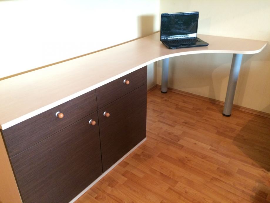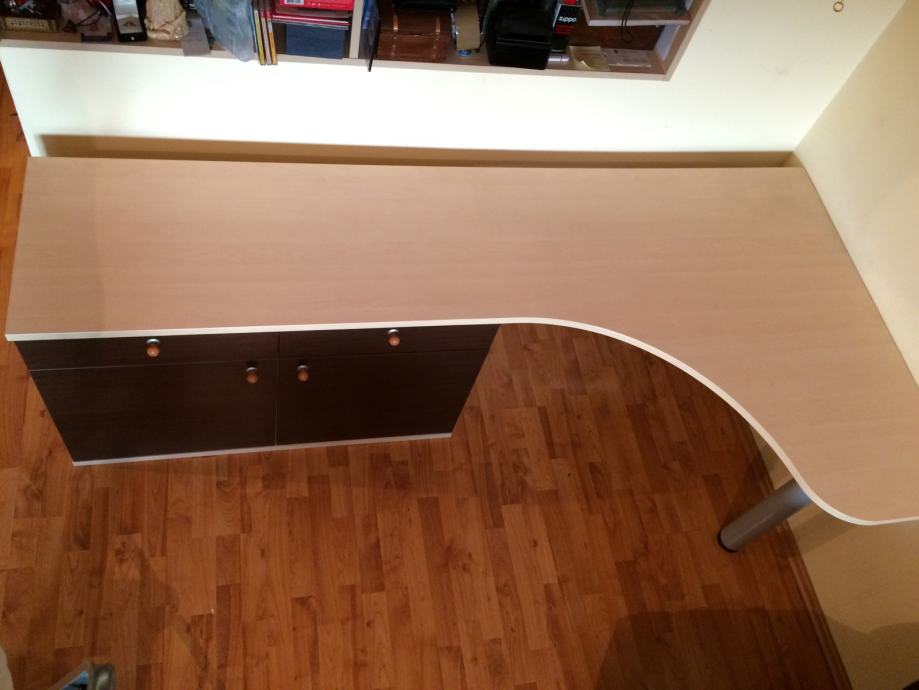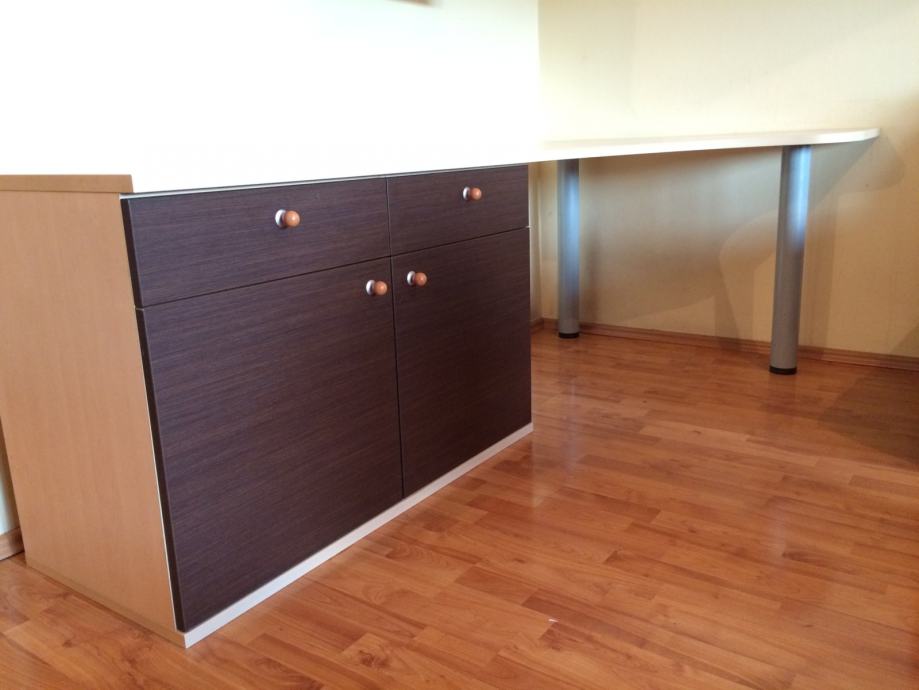 Veliki radni stol rađen po mjeri s ormarićem za dokumente s dvije ladice. U vrlo dobrom stanju.
