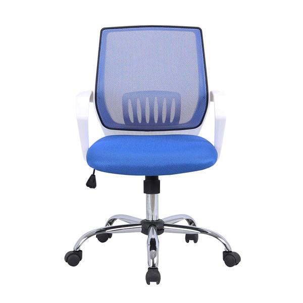 Stolica ima metalnu bazu, gumirane kotače i dodatnu podršku u donjem dijelu leđa,