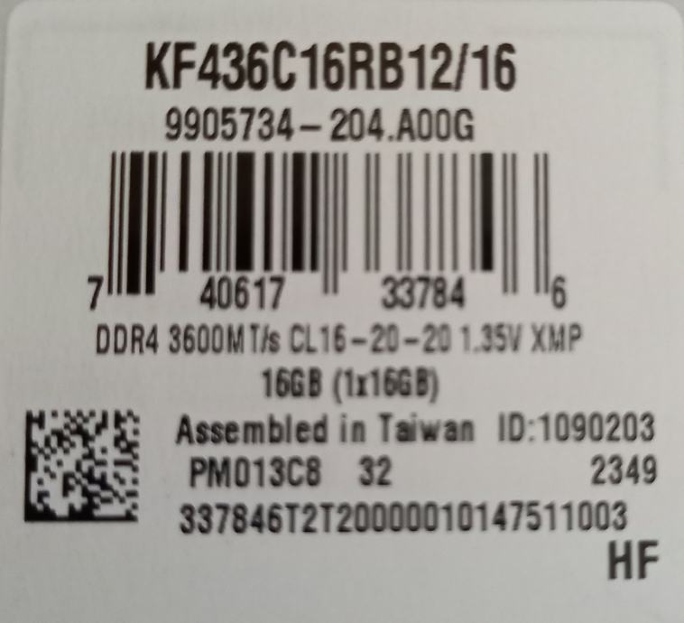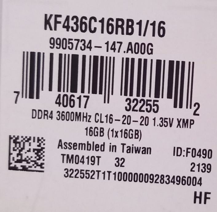 DDR4-3600 CL16 SDRAM (Synchronous DRAM) 2Rx8, memory