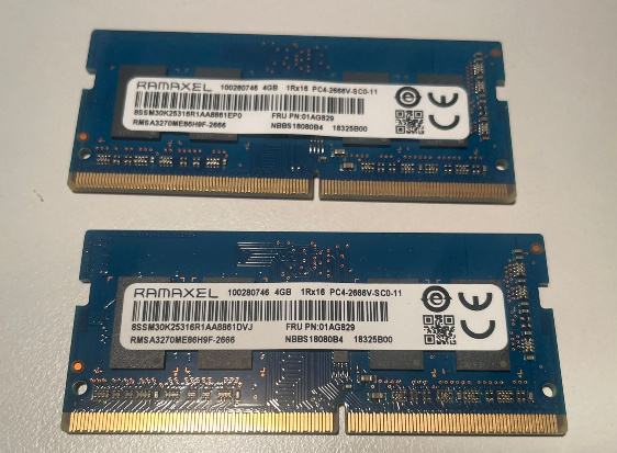 2 x 4GB soDIMM DDR4 RAM (8GB "pair")