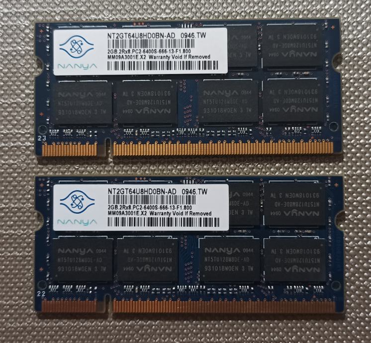 2x2GB 800MHz DDR2 2Rx8 PC2-6400S-666-13-F1, 200pin SODIMM