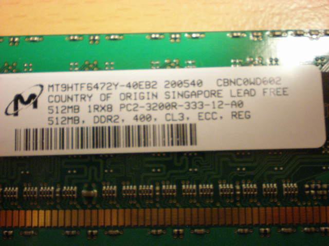 2x512Mb(1GB) Micron MT9HTF6472Y-40EB2 400mhz ECC CL3 IBM FRU: 13N1424 PN: 38L5092 ( eServer xSeries 346 )