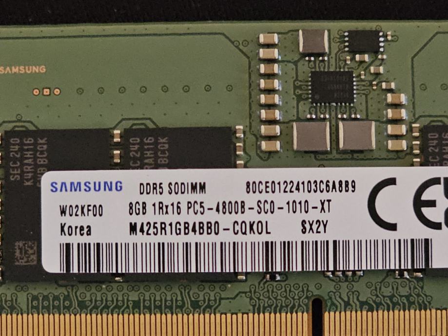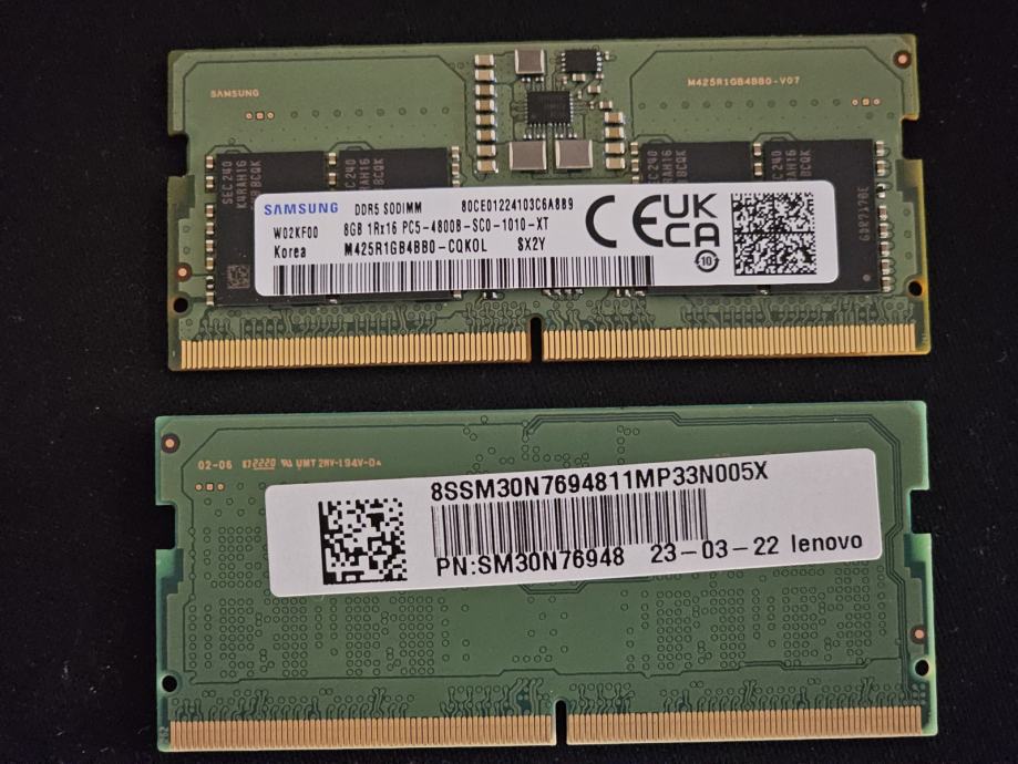 Na prodaju 2 SoDIMM RAM štapića. Svaki štapić je 8GB DDR5 memorije takta 4800MHz.