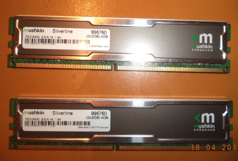 Vrhunsku memoriju Mushkin Silverline 4GB (2x2GB) DDR2-800 800 MHz PC6400 dual channel, s niskom latencijom CL5, s hladnjacima/heatsprederima, prodajem za 280kn.