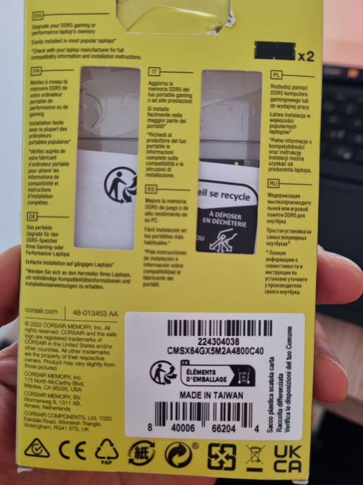 Corsair Vengeance 64GB DDR5 SO-DIMM 4800-40, (2x32GB), CMSX64GX5M2A4800C40