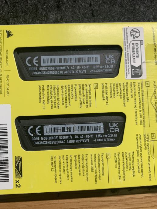 Prodajem navedeni RAM 2x8GB, brzina 5200MT/s CL40, DIMM, CMK16GX5M2B5200C40.