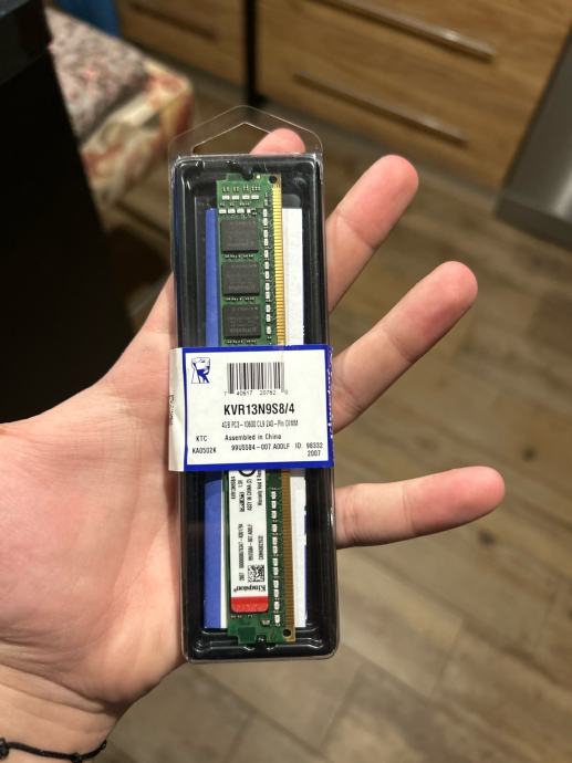 •Prodajem korištenu DDR3 memoriju kapaciteta 4GB za stolno računalo. Riječ je o Kingston memoriji, model KVR13N9S8/4, brzine 1333 MHz (DDR3-1333) i radnog napona 1.5V. Memorija je DIMM tipa, što znači da je namijenjena za desktop računala, a ne za laptop.