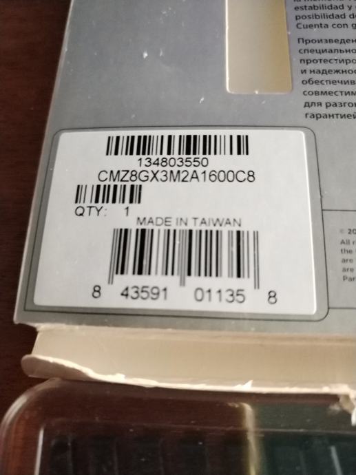 Corsair VENGEANCE 8GB Dual Channel DDR3 CMZ8GX3M2A1600C8. Model: CMZ8GX3M2A1600C8, - 240-pin DDR3 DIMM, DDR3-1600 MHz, 8GB (2 x 4GB), 9-9-9-24, 11.25 ns, 1.5 V