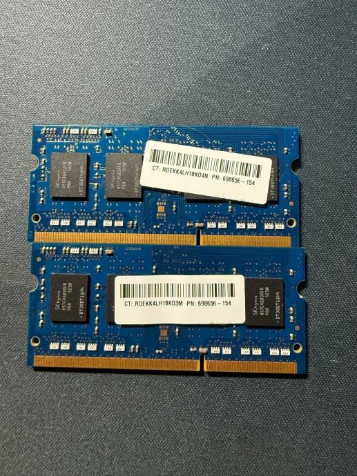 Prodajem rabljene SKhynix DDR3L memorijske module, dva komada od 4GB. Radi se o soDIMM tipu memorije za prijenosna računala.