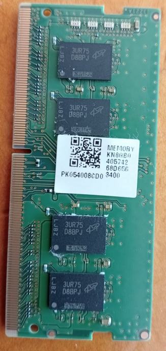 Specifikacija: 8GB DDR4, 3200 MHz (PC4-3200AA), 1Rx8, SODIMM (laptop RAM)