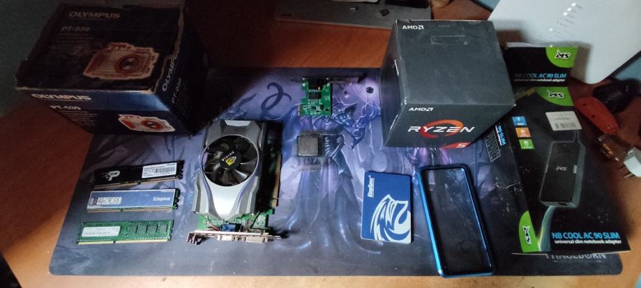Prodajem sve sa slike,sve ispravno,radna memorija,grafička 2gb, AMD ryzen 3 hladnjak(nikad korišten),kuciste za Huawei p30lite,kuciste za foto aparat,sve za 20eura, moguća zamjena za dijelove bicikla