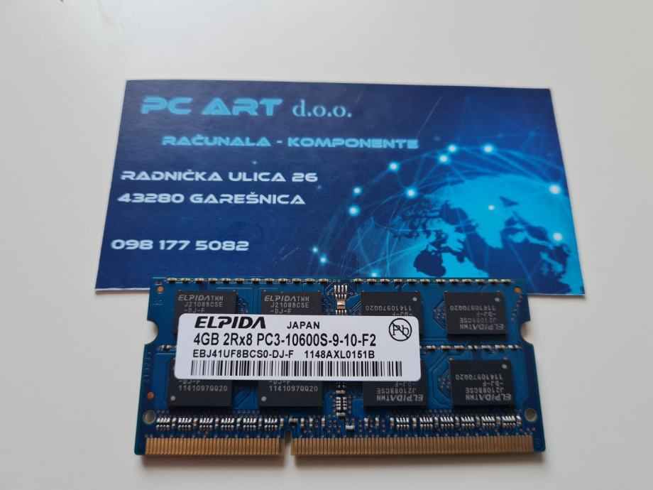 Elpida 4GB DDR3, PC3 2Rx8 10600S, 1333 MHz, SODIMM, Račun/R1 / Jamstvo