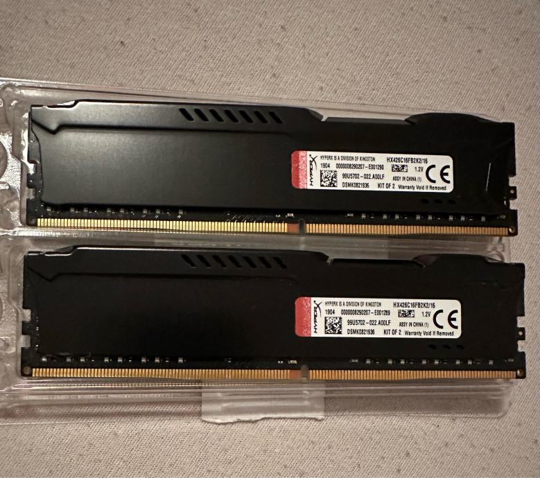Prodajem fury hyperx 16GB (8x2) RAM kit zbog prelaska na 32gb rama, ovi rade sasvim normalno i ispravni su. Tip memorije je DDR4, brzina je 2666MHz, CAS latencija je CL16.