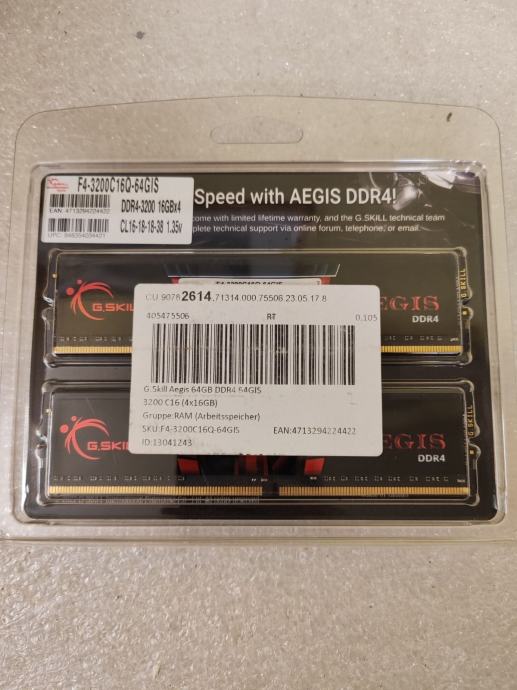 Vrhunsku memoriju G.Skill Aegis 64GB kit 4x 16GB DDR4 3200MHz CL16 prodajem za 300€.